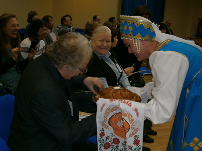 По старинной болдинской традиции, гостям был преподнесён хлеб-соль участниками ансамбля «Наследие» Большеболдинского РДК.