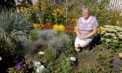 Оксана Сергеевна Логинова – сотрудник культурно-досугового центра – разбила цветник 14 лет назад возле строящегося дома. Дома ещё и не было, а возле него уже цвели цветы.