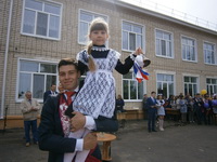 Ученики Большеболдинской средней школы построены на торжественную линейку.