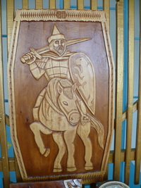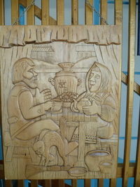 – Летом времени не хватает, так что резьбой занимаюсь, в основном, зимой, – говорит он. – Сейчас я работаю старшим охранником в гостевом доме «Ивановка». В перерывах между сменами получается четыре дня. В это время и занимаюсь резьбой. Дома у меня есть отдельная комната под мастерскую, и мне никто не мешает, скорее наоборот: жена поддерживает, сын Алексей помогает. Он сам стал хорошо справляться с резцом и уже самостоятельно вырезал три иконы.