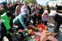 К обелиску погибшим в войне возлагаются цветы, венки, корзины. Их несут и взрослые, и дети в знак благодарности погибшим за их подвиг. Особое почетное место заняли на площади ветераны войны, труженики тыла, дети войны, которым были вручены цветы в знак их мужества и стойкости в тяжелые военные годы.