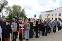 Утро 9 мая началось с благодарственного молебна Господу Богу за дарование победы в Великой Отечественной войне, который в храме Успения Пресвятой Богородицы отслужил клирик храма иерей Виктор Кравцов с клириком храма протодиаконом Петром Кустовым.